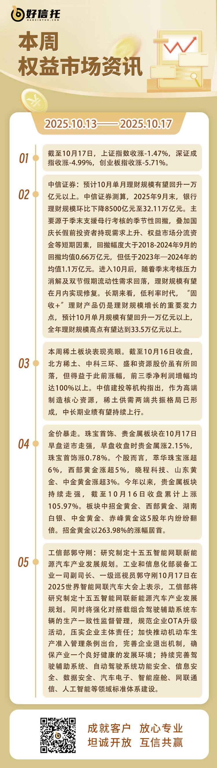 3、央行:我国债券市场托管余额192万亿元,稳居全球第二位。10月16日,据中国人民银行官微,截至2025年8月末,我国债券市场托管余额192万亿元,稳居全球第二位,较2020年末增长64.2%;公司信用类债券余额34.1万亿元,已成为实体企业仅次于信贷的第二大融资渠道。“十四五”期间,我国债券净融资规模55.7万亿元,占社会融资规模增量的35.3%,为实体经济增长提供有力支持。