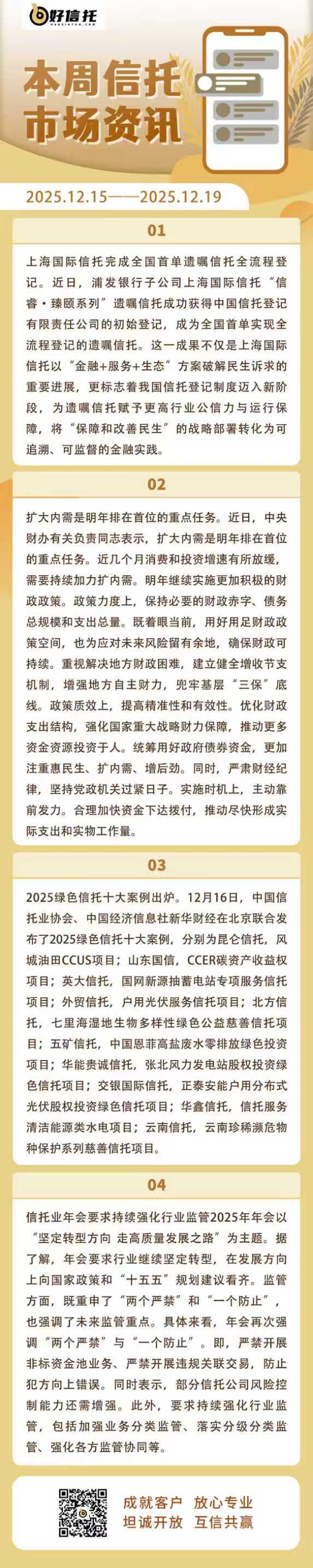 3、万科先调整20亿债券议案解“燃眉之急” 再抛37亿中票展期方案。12月17日深夜,万科公布了22万科MTN005债券展期方案。据了解,这笔债券本金兑付日为2025年12月28日,债项余额37亿元。按当日深夜公布的信息,召集人将在12月22日举行该笔债券持有人会议。本次会议共有6项议案,核心内容为,本期中期票据本金兑付时间展期12个月,调整后兑付时间为2026年12月28日。议案内容还包括,调整中期票据本息兑付安排、增加相应增信措施,或追加投资人可以接受的增信措施、有条件调整中期票据本息兑付安排等。值得一提的是,公布前述37亿债券展期方案之际,万科还在为另外一笔20亿债券展期,在5天宽限期内进行最后的努力。在与债券持有人就展期事宜进行博弈过程中,万科完善了22万科MTN004展期方案。此前一日,万科于12月16日公布了该笔债券最新的本息兑付安排。按最新方案,这笔20亿元的中票本金兑付时间展期12个月,调整后兑付时间为2026年12月15日,届时将偿付这笔中票全部本金。