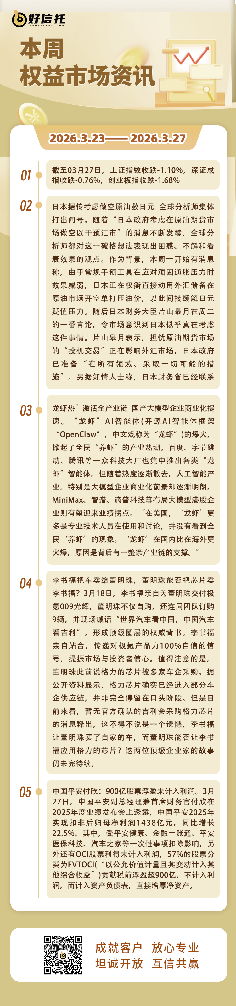 2、中信证券明明:“高质量建设债券市场‘科技板’”首次被纳入国家五年规划 核心在于强化债市服务科技创新的精准性和系统性。十五五”规划纲要提出,高质量建设债券市场“科技板”。中信证券首席经济学家明明日前在接受上海证券报记者采访时表示,“高质量建设债券市场‘科技板’”首次被纳入国家五年规划,核心在于强化债券市场服务科技创新的精准性和系统性。“债券市场‘科技板’旨在为科技型企业打造专门的发行通道和制度安排,破解其发债门槛高、投资者识别难等痛点,推动金融资源更高效、精准地配置至科技创新领域,引导资金流向硬科技与关键核心技术攻关环节。”明明判断,后续政策或将从标准、产品、机制三方面协同发力。